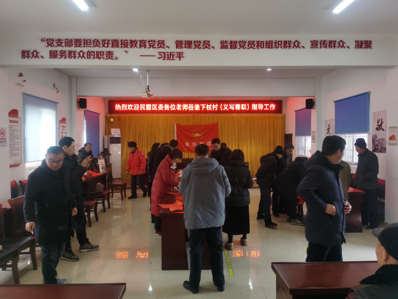 千门万户曈曈日,总把新桃换旧符。写春联、贴福字作为中华民族的传统习俗,包含着浓浓的中国色彩。近日,常州市金坛区薛埠镇下杖村工会邀请联合会民盟金坛区委组织盟员和书法家到下杖村开展“迎新春、义写春联”活动,以实际行动对辖区党员职工、职工家属进行了亲切关怀。