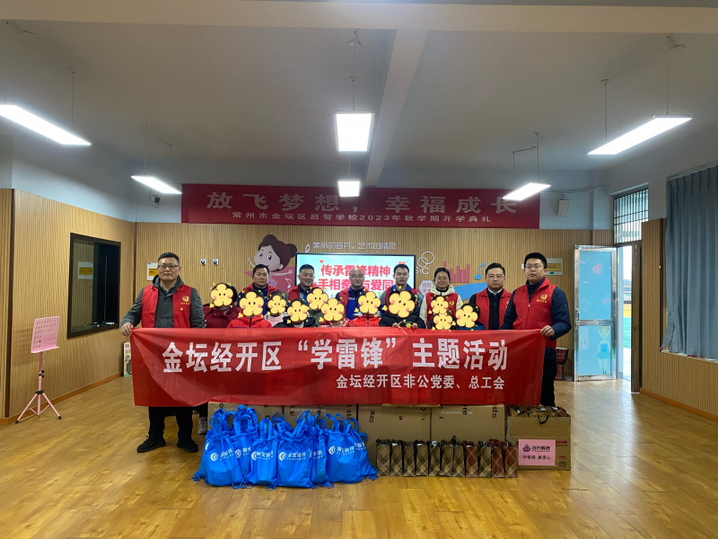 3月5日,江苏金坛经济开发区总工会、非公企业党委组织蜂巢能源、当升科技、常宝普莱森3家园区企业党员志愿者至金坛区启智学校开展“学雷锋”主题活动。
