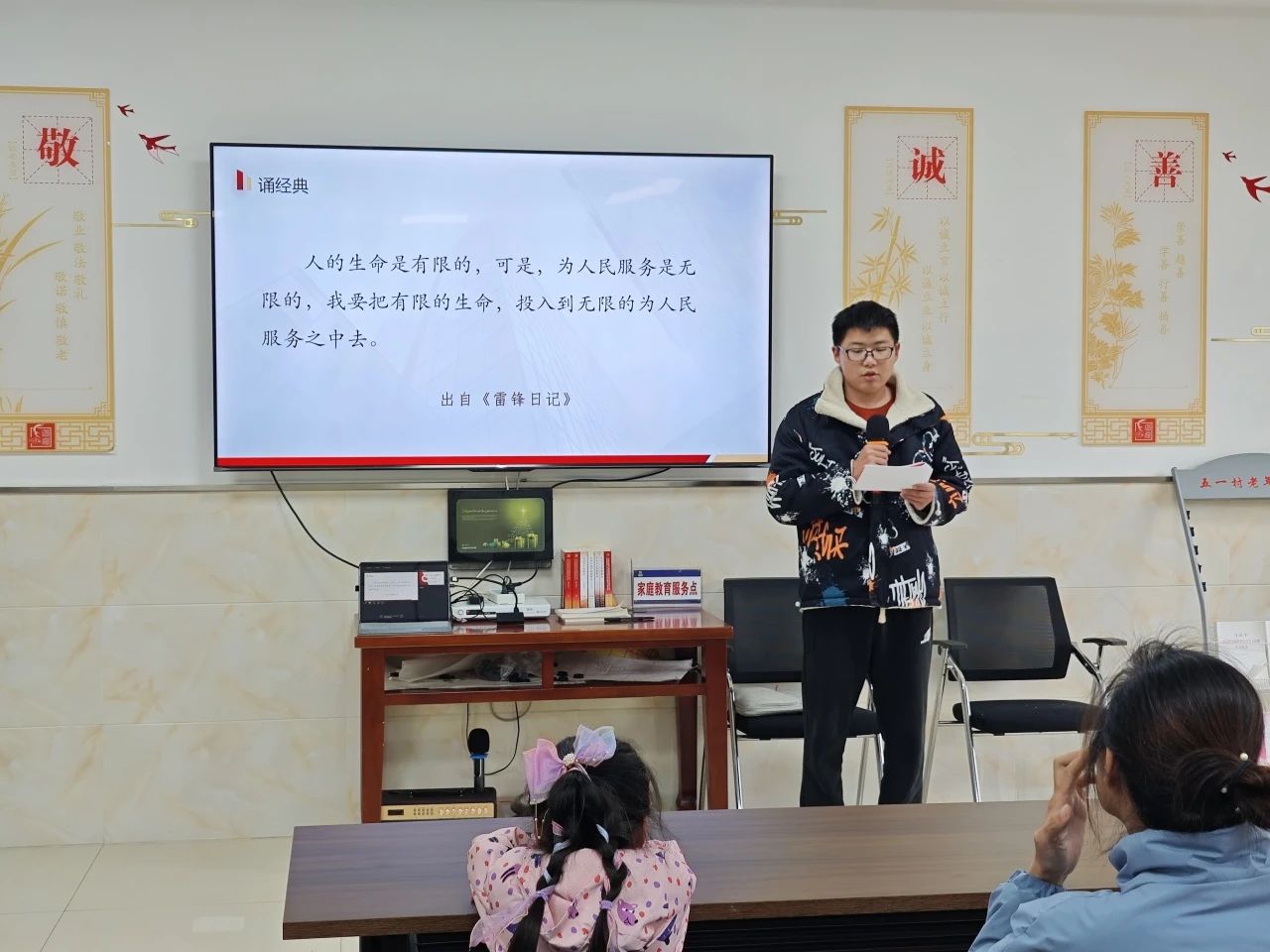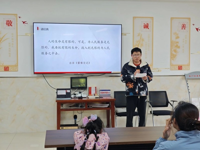 本次诵读的经典节选自《雷锋日记》:人的生命是有限的,可是,为人民服务是无限的,我要把有限的生命,投入到无限的为人民服务之中去。简短朴素的言语,却生动地反映出了雷锋同志服务人民、甘于奉献的崇高品质和坚定信念。