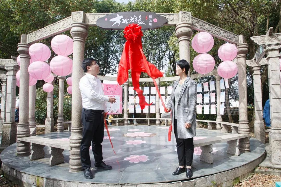 活动现场,朱宏英、薛文伟为“桃花缘”相亲角揭牌。