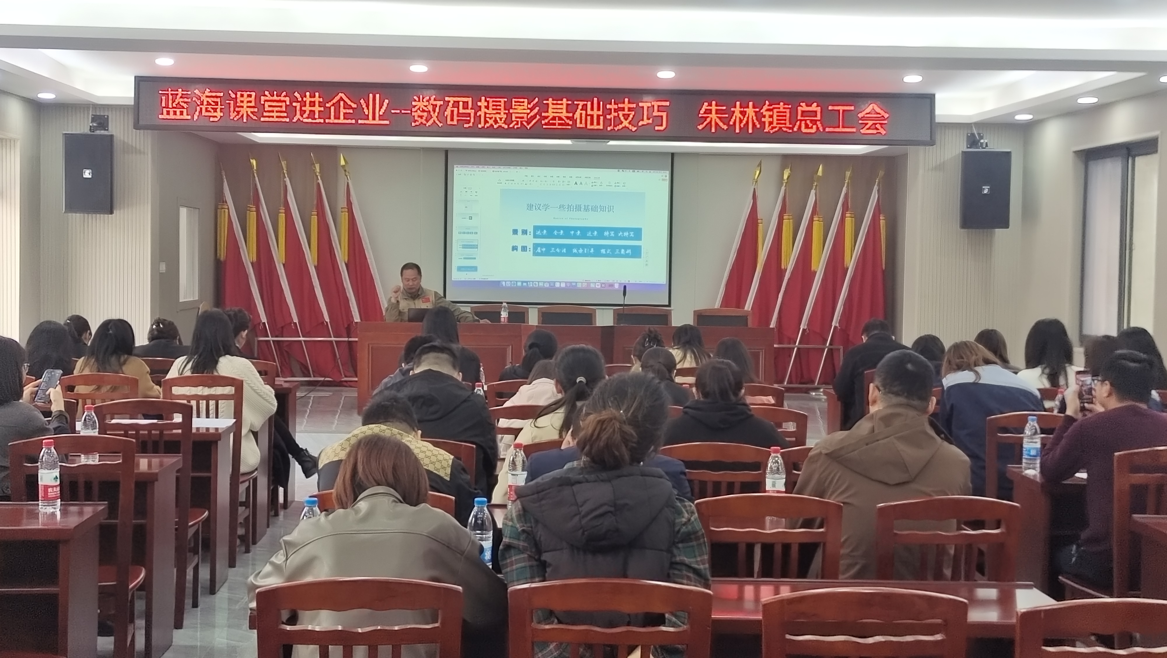 随着新媒体的蓬勃发展,新媒体也逐渐影响并改变着我们的生活方式。为了更好地运用新媒体宣传模式开展机关、企业文化宣传建设工作,提升大家的综合水平。近日,常州市金坛区朱林镇总工会邀请到区摄影家协会主席、区融媒体中心视频部主任浦映同志在长兴村村委大会议室进行授课。朱林镇机关干部、各村工会主席、企业工会主席及企业职工共计46人左右参加。