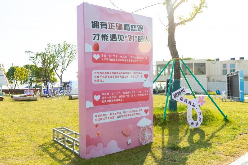 扬新风:展板上共有20组照片,每组照片为两张完全相同的照片,男女双方依次轮流打开一张照片,翻到相同照片即可消除,若两人翻开照片不一致,游戏继续,直至翻开相同照片,全部照片翻开后显示“拥有正确婚恋观,才能遇见‘对’的人”文明婚恋倡议书。