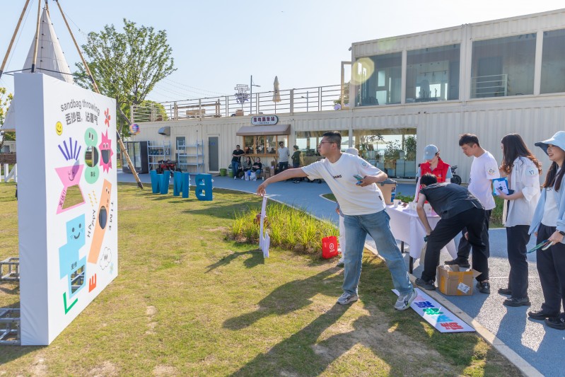焕风采:“扔沙包”“吹球过河”运动类小游戏把气氛推向了高潮。“这个游戏虽然看着简单,但是玩起来还真不容易。”大家你来我往,投中了大声欢呼,玩输了相互加油,喝彩声和笑闹声交织。