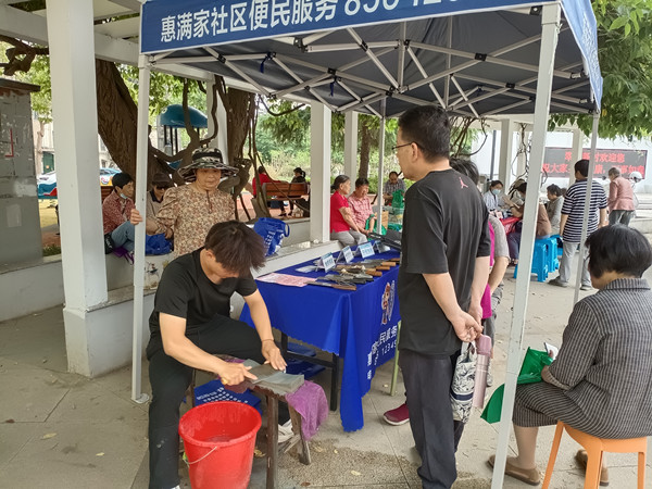 活动现场,吸引了很多辖区职工们的踊跃参与。在健康义诊服务区,免费为职工量血压、测血糖、常见病咨询与预防,耐心地为职工对口腔上的问题进行答疑解惑。在志愿便民服务区,不少职工早早在排队等候磨刀、理发等服务。社区工联会志愿者也向驻足停留的职工们发放法律法规宣传单、防灾减灾及相关政策等宣传册,向其普及相关知识和进行法制宣传。