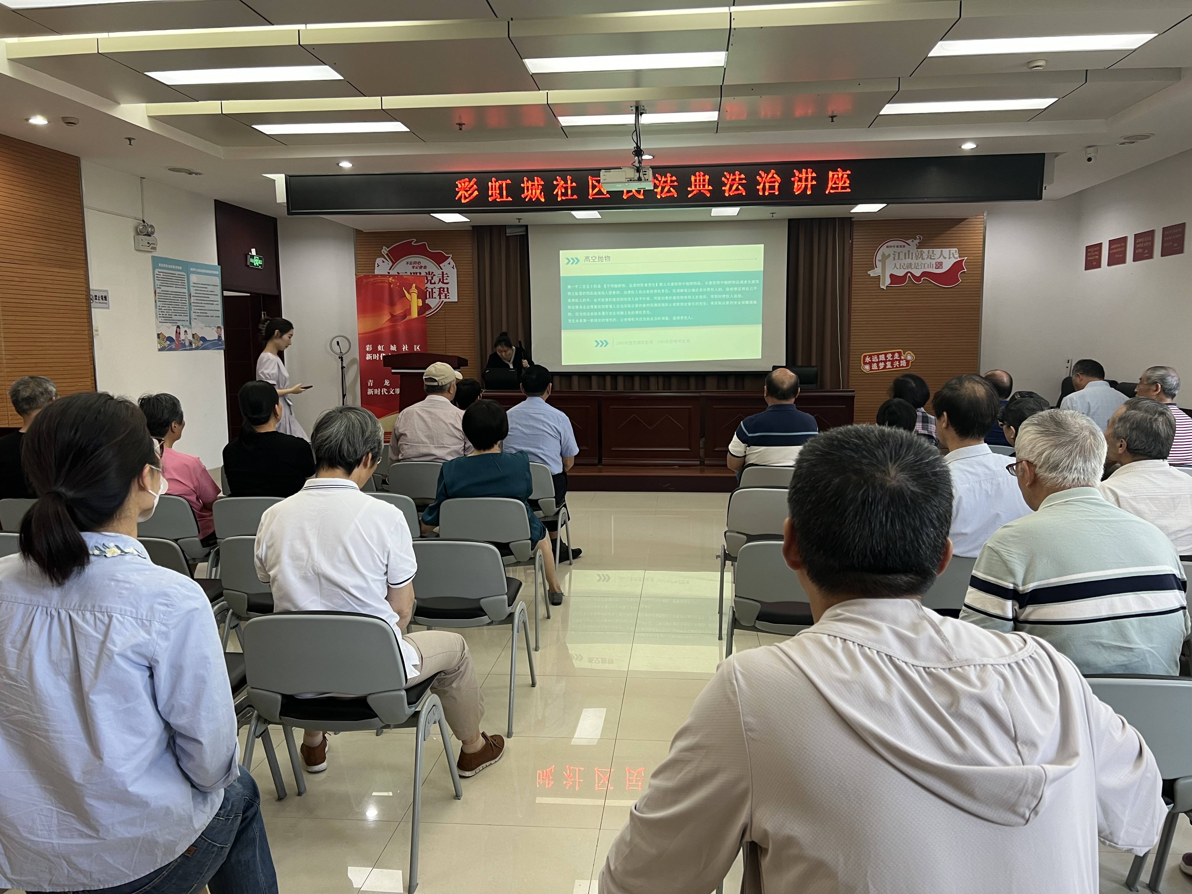 为进一步增强彩虹城社区居民维护自身权益的意识,促进建立平等、和睦的邻里关系,5月28日下午,彩虹城社区工联会邀请江苏典修律师事务所顾宇菲律师在彩虹城社区开展关于“高空抛物、漏水、噪声的法律”的法治宣讲活动。
