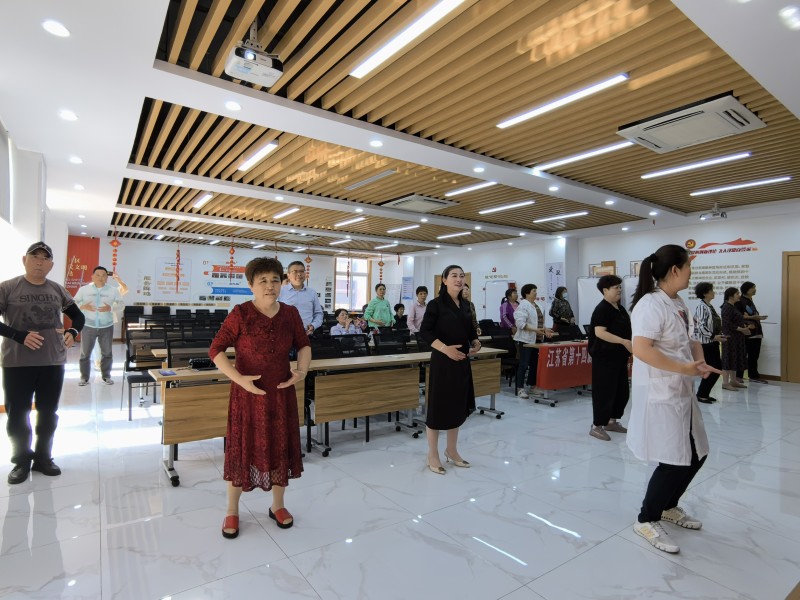 讲座中,秦医生分营养代谢与中老年人健康、运动方式选择与中老年人适应性、科学运动促进中老年人身心健康三个部分详细剖析了老年人营养摄入知识和适合老年人的运动形式。通过有趣的问答,为大家普及了科学的健身知识和常见的锻炼误区,为中老年人群提出相适应的科学运动方式,例如慢步走、散步、游泳,太极拳,广场舞等,坚持每周3至5次锻炼,以达到强身健体的效果。在讲座最后秦医生现场带领居民们学习了八段锦,居民们纷纷表示这很适合她们缓解紧张以及疲劳。