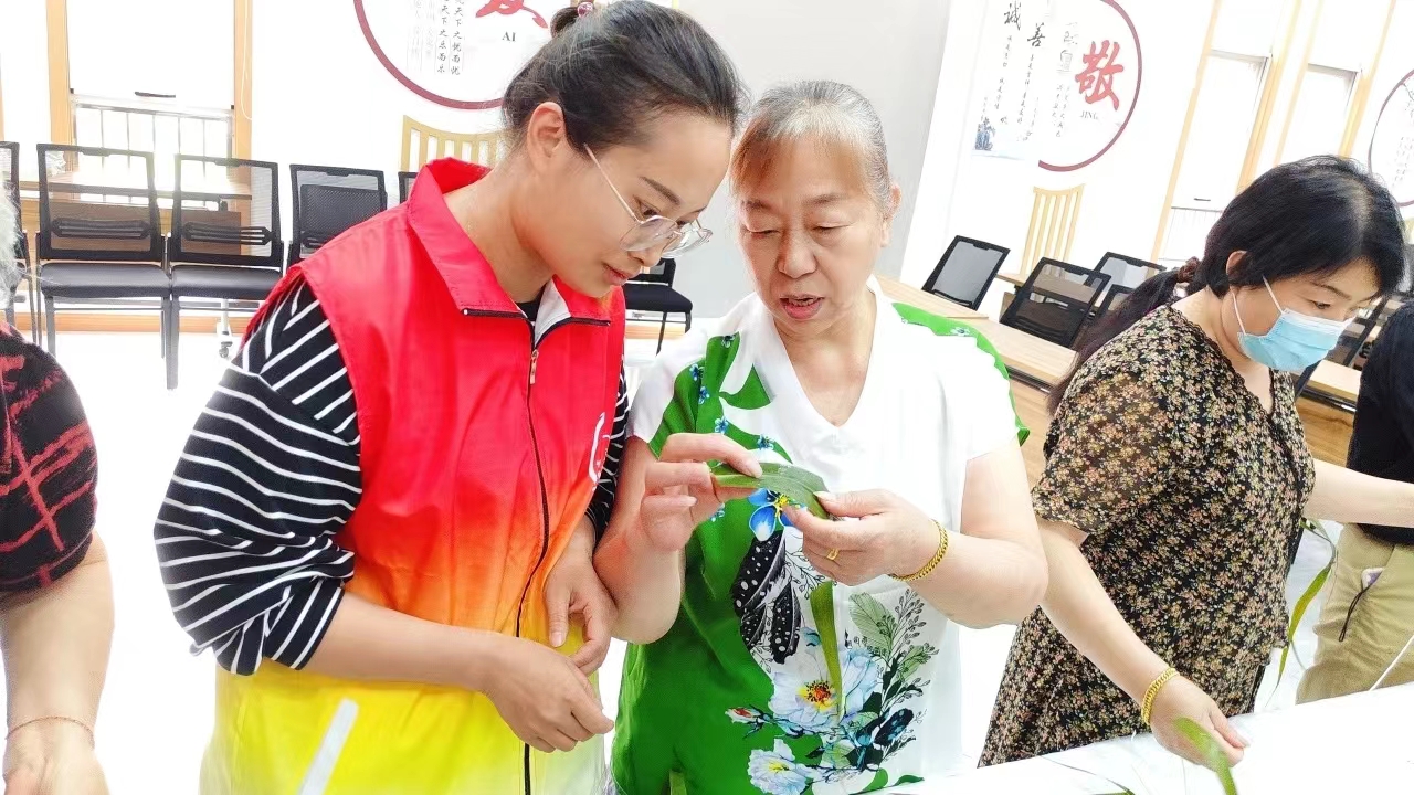 活动当天,华丰社区新时代文明实践站热闹非凡,社区工作人员和家悦的党员志愿者们早早地就开始布置现场,鲜绿的粽叶、洁白的糯米以及各类丰富的食材整齐摆放,营造出浓厚的节日氛围。众多社区老人兴致勃勃地前来参与,他们的脸上洋溢着期待的笑容。活动正式开始后,大家围坐在一起,共同学习裹粽子。社工耐心地向老人们讲解包粽子的技巧,从粽叶的折叠到糯米的填充,再到绳子的捆绑,每一个步骤都细致入微。老人们一边认真聆听,一边动手尝试,虽然动作略显生疏,但在大家的相互帮助下,一个个形状各异却充满爱意的粽子逐渐成型。除了裹粽子,现场还安排了精彩的文艺表演。家悦文娱队的队员们纷登台献艺,乐器、歌声让老人们沉浸在欢乐的海洋中。此外,还有有趣的互动游戏环节,老人们积极参与,笑声和掌声此起彼伏。