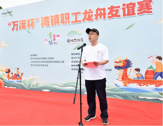 雪堰镇人大主席、总工会主席许文涛致欢迎辞。许文涛表示,湾镇龙舟职工友谊赛经过两届发展,成为了广大职工群众喜闻乐见的赛事。每条龙舟、每次划桨,都倾注着大家“爱家乡、爱雪堰”的家乡情怀,和“心往一处想、劲往一处使”的合作精神。愿各队以“舟”会友,以“桨”交锋,不负时代,为梦想奋楫!