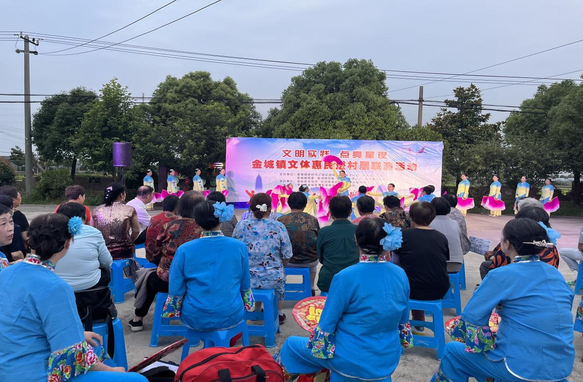 为深入文化惠民,丰富群众文化生活,近日,由常州市金坛区金城镇主办、沈渎村新时代文明实践站、工联会、妇联、团总支承办的“文明实践 点亮星夜”金城镇文体惠民进村居联演活动在沈渎村在文化广场精彩上演。