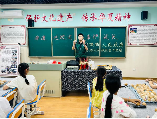本次禁毒宣传系列活动通过禁毒知识宣传、毒品和用具实物模型展示、观看禁毒电影等形式,为同学们介绍毒品的危害、禁毒有关法律知识,让广大青少年充分认识到毒品对身体的危害,鼓励他们当好小小“宣讲员”,共同抵制毒品诱惑,共建无毒校园。活动中,市级非遗传承人吴建中开设了一场以“禁毒”为主题的蛋雕课外活动,将禁毒知识融入蛋雕文化中,让同学们在欣赏非遗文化的同时,接受禁毒文化熏陶。本次活动探索“非遗+禁毒”有机融合模式,在传承金坛蛋雕非遗文化的同时,让禁毒宣传呈现新意。