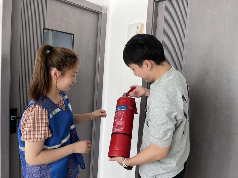 在检查过程中,社区网格员重点检查活动室安全出口、消防通道是否畅通,消防器材配备是否符合要求,电线是否老化,用电用火是否安全等;实地查看了活动室周边电瓶车停放和飞线充电等情况。检查结束后,针对发现的问题,社区网格员要求活动室负责人按时整改,避免发生安全事故。同时,社区网格员还积极开展安全知识宣传和现场教学使用灭火器,普及安全知识,并加强自防自救力量建设,第一时间有效处置突发情况,达到“灭早、灭小、灭初期”的目标。