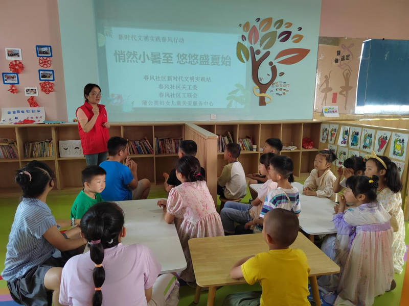 倏忽温风至,因循小暑来。小暑是夏天的第五个节气,表示季夏时节的正式开始。在这清荷摇曳,蝉声呜呜地节气里,在这充满生机与活力的时节里,为了让辖区内的未成年人更好地了解中国传统文化,近日,常州市金坛区金城镇春风社区工联会、蒲公英妇女儿童关爱服务中心携手开展“悄然小暑至 悠悠盛夏始”传统文化体验活动,旨在通过寓教于乐的体验,引领孩子们深入探索中国传统节气文化的独特魅力,让他们的假期生活更加充实而有意义。