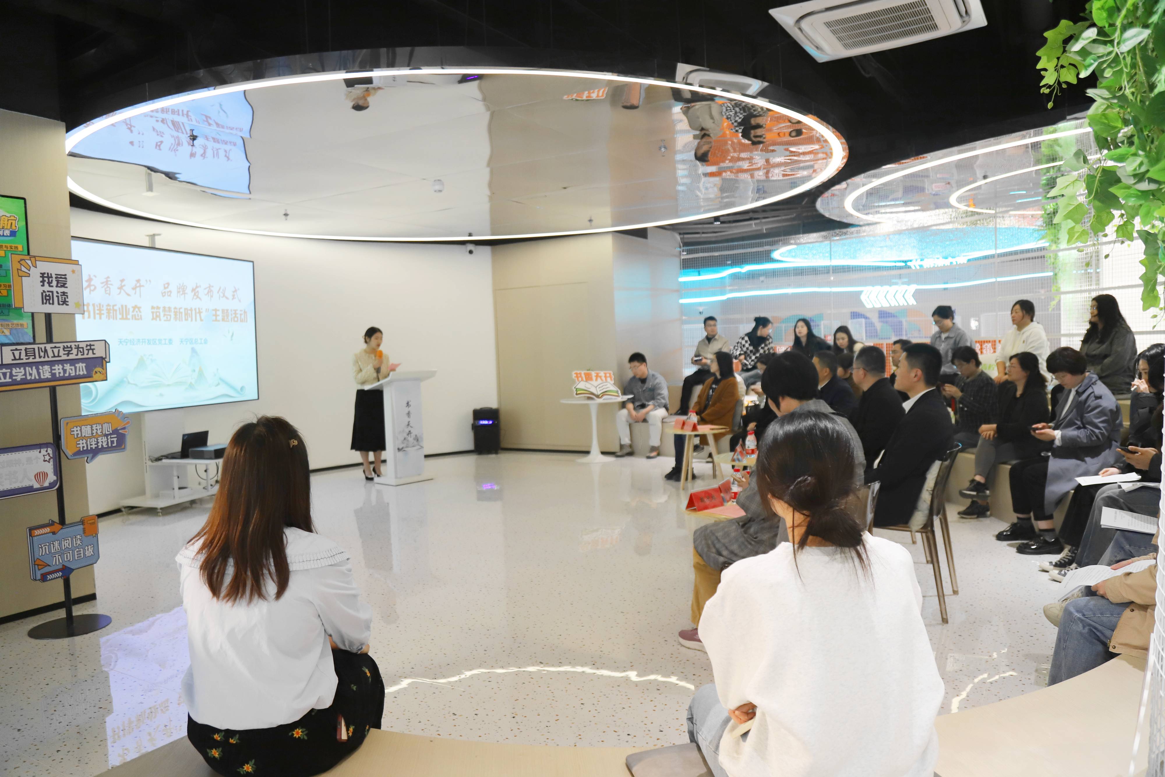 2024年,开发区全力打造“书香天开”职工书屋品牌。通过开展 “书香天开”品牌发布仪式暨“书伴新业态 筑梦新时代”主题活动,邀请一批开发区企业职工和新业态新就业群体代表,共同感受阅读拓宽人生视野,提升良好精神风貌的书香美好。讲师徐帆以“阅读翻转课堂”形式,与大家共读好书,引领大家在活动中充分互动分享,思考如何在沟通过程中关注彼此的观察、感受、需要和请求,并建立深度、真诚、尊重的人际关系,从而化解冲突,减少暴力和敌意,以和平的方式满足彼此的需求。