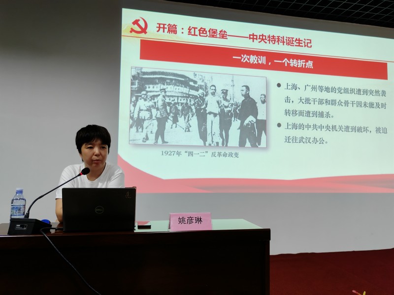 姚彦琳老师以“隐秘而伟大—中国共产党隐蔽斗争史”为主题,以开篇“红色堡垒中央特科诞生记”为引线,从“浴血交锋 逆境重生”到“生死决战 全面反攻”,从“隔岸对垒 虎穴忠魂”到“居安思危 警钟长鸣”四个部分,生动地讲述了革命先烈们在艰难时期的斗争故事。