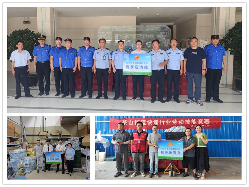 “夏季送关爱”活动是茶山街道党工委关心职工的务实举措,也是街道总工会每年开展的服务职工的“三送”活动之一。冯兵一行先后走访慰问了常州市毛条厂有限公司、润忻享商业管理(成都)有限公司常州分公司、快递行业工联会等户外劳动者及新就业形态劳动群体,感谢他们为茶山经济发展作出的贡献,并叮嘱他们在铆足干劲工作的同时做好防暑降温。要求各级工会要扎实做好高温条件下一线职工的关心关爱和服务保障工作,确保户外劳动者安全度夏。