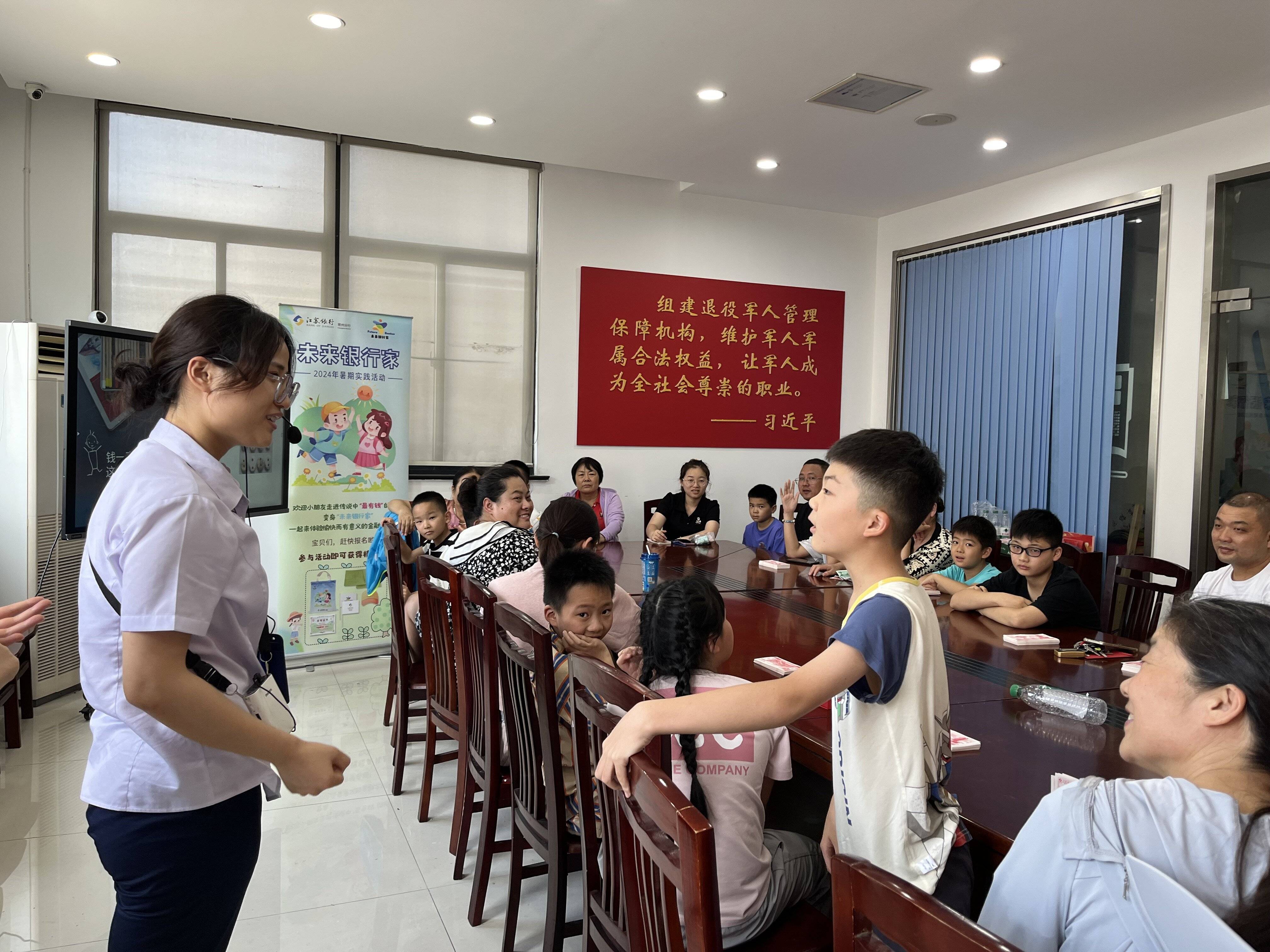 为丰富辖区职工子女的社会知识和社会经验,探索学习金融知识,2024年7月25日下午,河苑社区工会联合会联合江苏银行常州经开区支行、河苑社区新时代文明实践站、河苑社区社工室开展“小小银行家 未来梦想家”主题亲子活动。