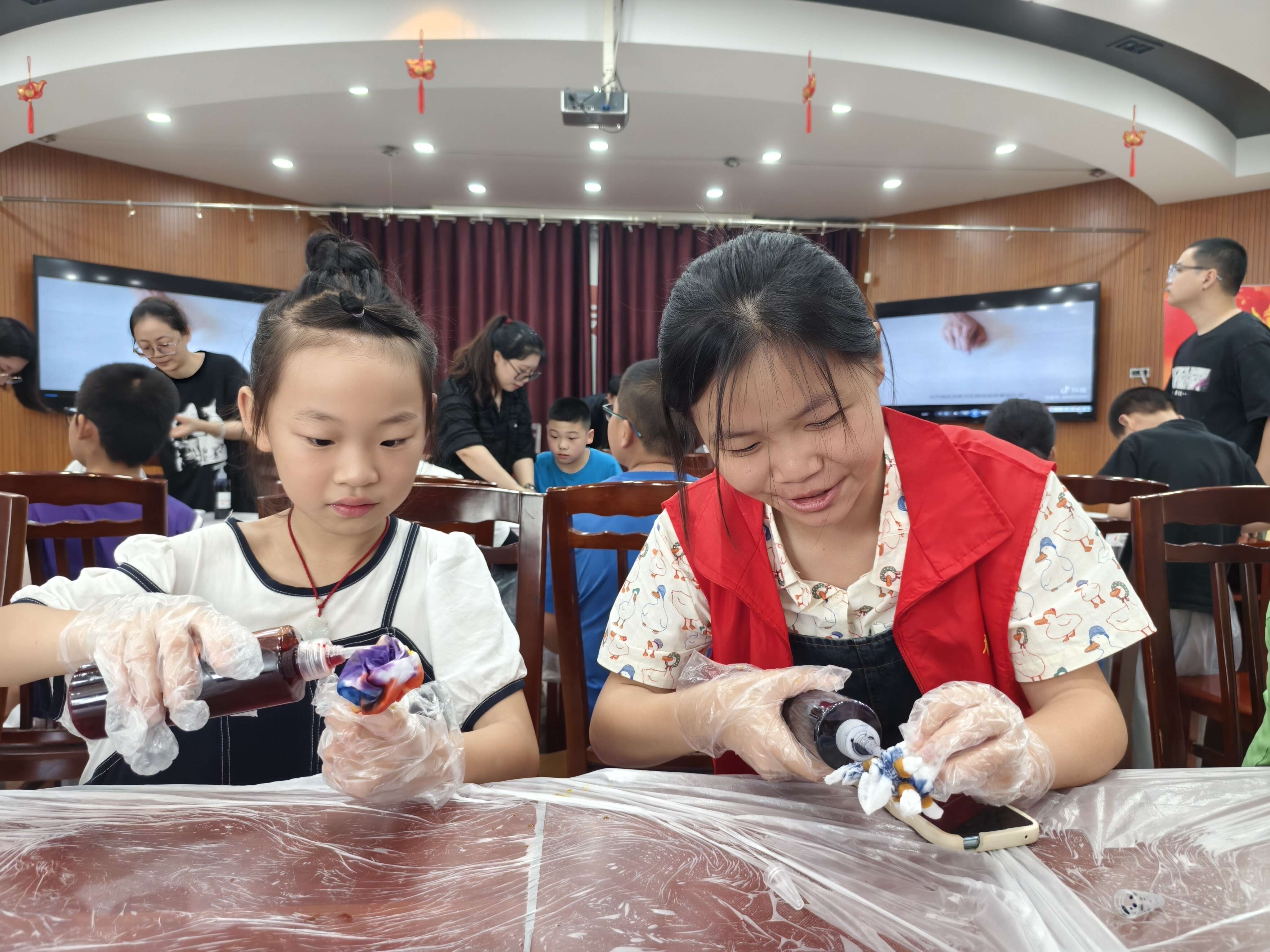 为了更好的弘扬中华优秀传统非遗文化,带领青少年走进扎染的艺术世界,感受这一传统民间工艺的独特魅力,7月22日下午,紫云苑社区工联会联合天宁吾悦画堂艺术组织辖区青少年开展“非遗扎染 布里生花”非遗文化体验活动。