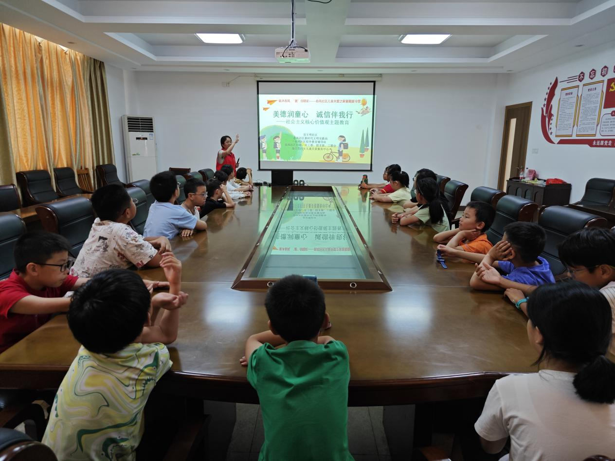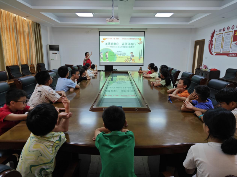 为进一步宣扬中华民族诚实守信的优良传统,弘扬人人讲诚信、事事重诚信的良好社会氛围,8月19日上午,常州市金坛区金城镇春风社区工联会联合蒲公英妇女儿童关爱服务中心组织未成年人开展“美德润童心 诚信伴我行——社会主义核心价值观主题教育”活动。此次活动通过观看诚信动画、聆听诚信主题宣讲和体验诚信手作等活动,将重诺守信的种子深植于孩子们的心中。
