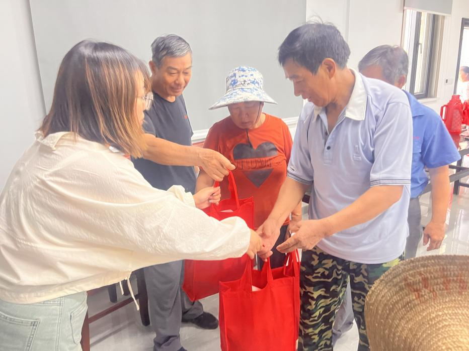 茅庵村工联会一直重视对工作人员的人文关怀,每年高温天气都会为户外清洁人员准备各类防暑物资,保障清洁人员的身心健康。活动当天,村工作人员早早来到服务大厅,精心包装好毛巾、藿香正气胶囊、十滴水、香皂、防蚊水等丰富的防暑降温物资,并递给了辛劳的户外工作者,同时向他们普及日常防暑降温和应对各种紧急情况的常识。