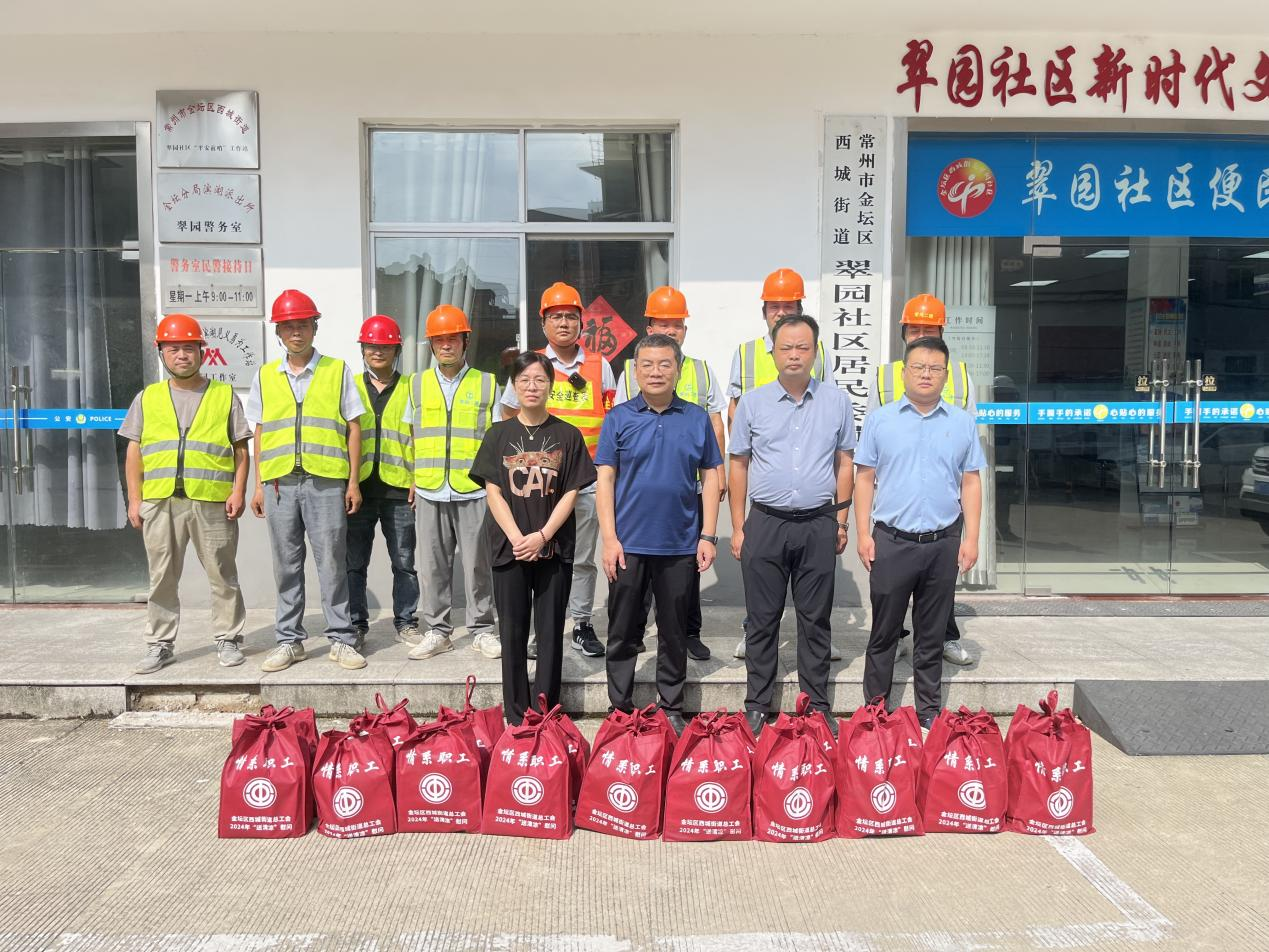炎炎盛夏,伏天正盛。翠园新邨老旧小区改造工作正在紧锣密鼓地进行中。常州市金坛区西城街道党工委副书记、总工会主席许志明带队开展了“送清凉”慰问活动,为奋战在改造一线的工作人员送去了防暑降温慰问品,也带去了党和政府以及工会组织的关心关怀。