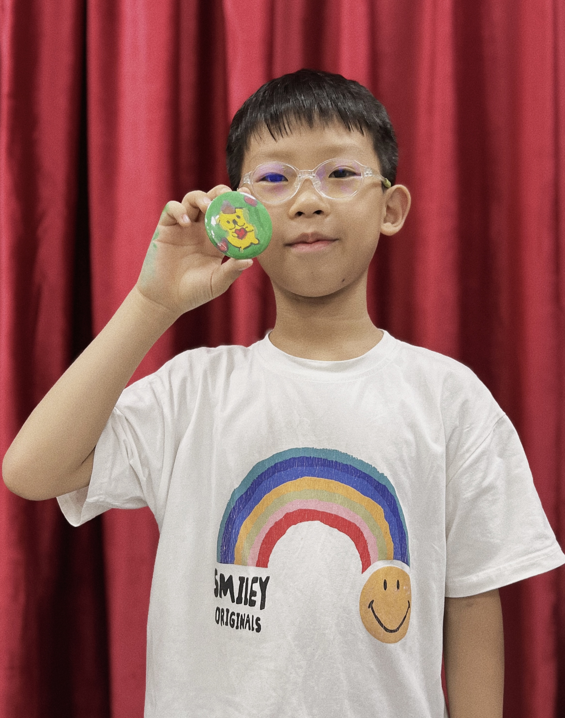 活动现场,工作人员向大家展示了近年来深受儿童欢迎的吧唧印章制造机,接着手把手教授着制作徽章的方法,孩子们可以自由发挥想象力,设计自己喜欢的颜色和图案,沉浸在色彩的世界里,用画笔勾勒出独一无二的作品。不一会,一枚枚小小的圆片在大家的精心创作下,变成了一件件精美的艺术品!