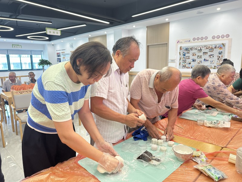 活动中,工作人员首先讲述中秋佳节的来历,让大家对中秋传统文化有了更多了解。接着就到了制作环节,工作人员边示范边给老人们讲解冰皮月饼的制作步骤。“将面团分成大小均等的剂子,压扁,放入馅料,记得要小心包紧不要露馅,最后放入模具压实……”还没等工作人员讲完老人们就迫不及待地开始动手制作了,有的搓面团子、有的包馅、有的压模子,大家分工明确,配合默契,不一会儿功夫,一个个小月饼便制作完成了,包裹着不同馅料,冰皮晶莹剔透,精致又好看。
