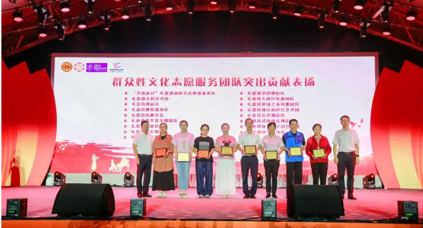 活动现场,还为群众性文化志愿服务团队突出贡献者以及礼嘉镇优秀理论宣讲员颁奖。