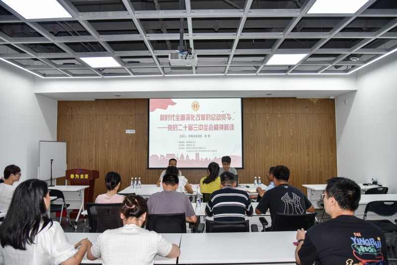 为深入学习贯彻党的二十届三中全会精神,进一步提升西太湖企业职工的思想政治素质,团结引领职工听党话跟党走,近日,在常州西太湖科技产业园总工会的组织下,江苏春为全过程工程咨询有限公司工会开展了“思政教师进企业”活动。本次活动邀请了中共常州市委党校现代化理论研究中心副教授、主任,江苏省社区发展研究会理事,江苏领导学研究会理事邵晔为职工授课。