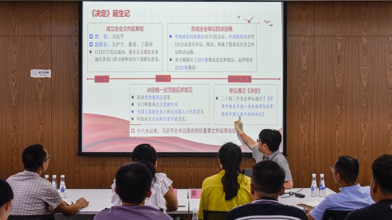 邵晔教授以《新时代全面深化改革的总动员令——党的二十届三中全会精神解读》为主题,从《中共中央关于进一步全面深化改革、推进中国式现代化的决定》为切入点,从为什么要改、往哪里改、怎样去改三个方面进行了详细阐述,让大家对党的二十届三中全会精神有了全面认识和深刻理解。