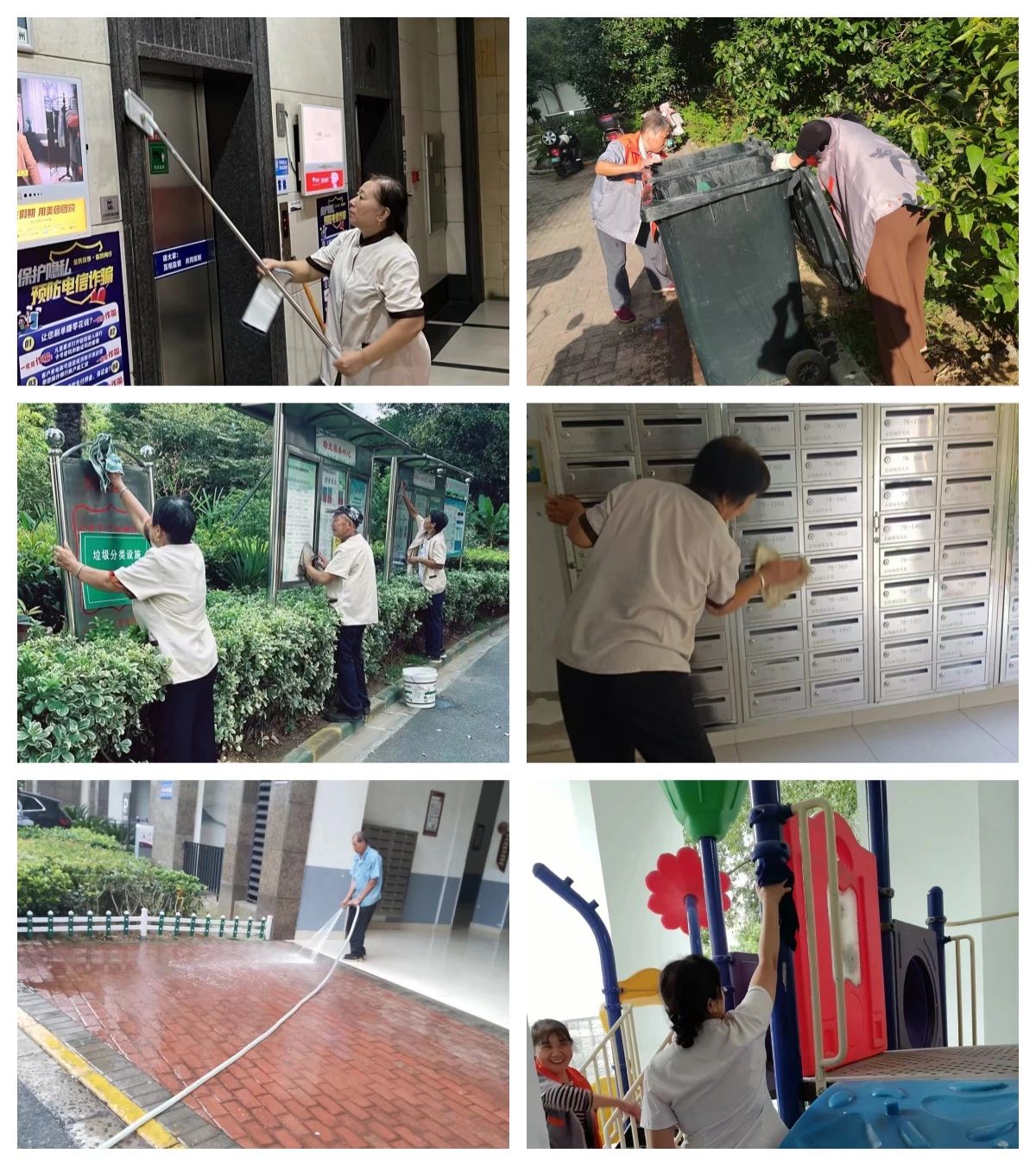 江南中鑫物业各项目全体人员开展了环境整治行动。保洁人员对小区的楼道、电梯、垃圾桶等公共区域进行了彻底的清洁和消毒,清理了卫生死角和杂物。绿化人员对小区的花草树木进行了修剪和养护,及时补种了缺失的绿植,让小区的环境更加优美。