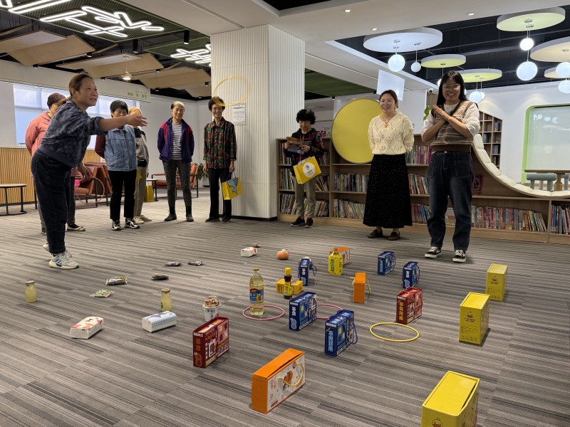 活动现场热闹非凡,老人们积极参与制作香包、写福字、套圈圈等趣味活动。在制作香包区域,老人们精心挑选布料和香料,小心翼翼地裁剪布料、缝制香囊袋、装入香料,每一个步骤都做得格外认真。写福字环节,老人们用毛笔认真书写着“福” 字,每一个笔画都饱含着对美好生活的期许。为了增加活动的趣味性和激励性,活动现场还设置了套圈圈环节,这一环节充分调动了老人们的积极性,让他们在活动中更加投入。现场的气氛热烈而欢快,老人们在欢声笑语中度过了一个充满乐趣和成就感的时光。