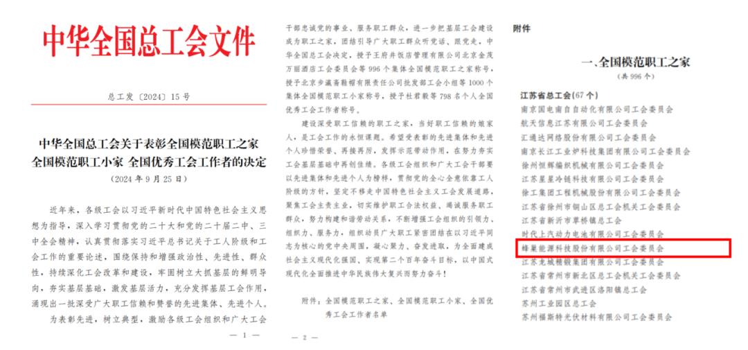 近日,中华全国总工会印发《中华全国总工会关于表彰全国模范职工之家 全国模范小家 全国优秀工会工作者的决定》,蜂巢能源工会获评“全国模范职工之家”。