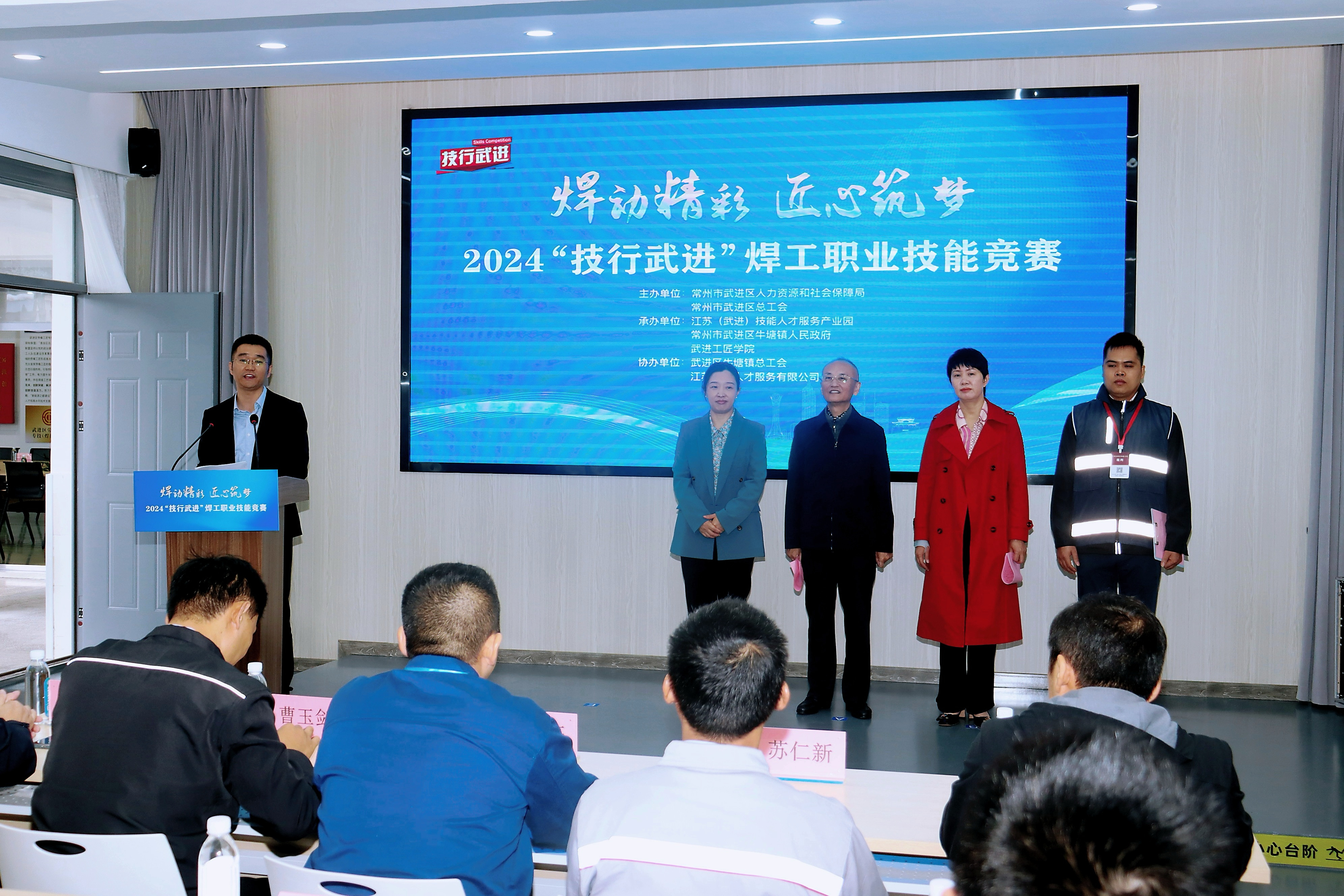 为深入学习贯彻党的二十届三中全会精神,更好地在全区弘扬劳模精神、劳动精神、工匠精神,充分发挥职业技能竞赛在技能人才培养中的引领示范作用,着力培育一批适应新时代发展需要的工匠人才。10月26日,由武进区人社局、武进区总工会主办,江苏(武进)技能人才服务产业园、武进区就业创业促进会、牛塘镇人民政府、牛塘镇总工会、武进工匠学院等承办的“焊动精彩 匠心筑梦” 2024技行武进—焊工职业技能竞赛在武进工匠学院成功举办。