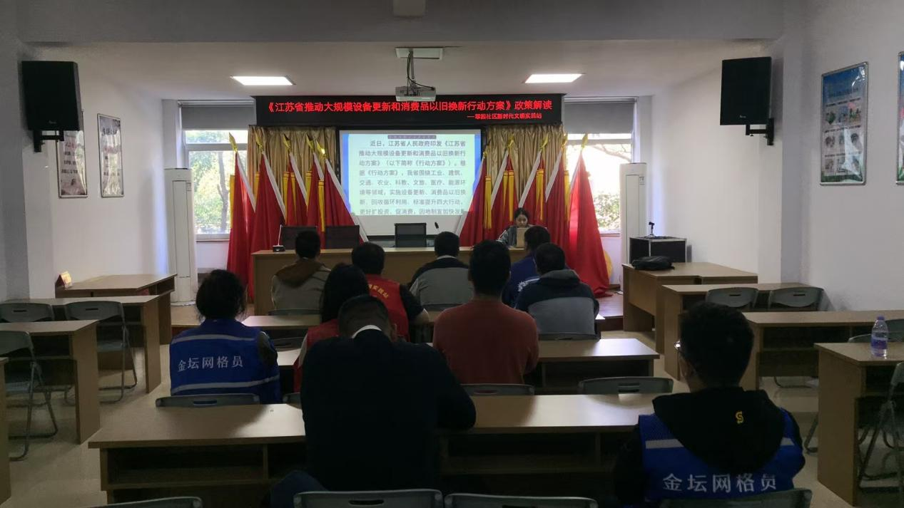 为贯彻落实上级关于消费品以旧换新的部署要求,激发潜在消费,促进经济循环,提升居民生活品质,近期,常州市金坛区西城街道翠园社区开展了《江苏省推动大规模设备更新和消费品以旧换新行动方案》(以下简称《行动方案》)政策宣讲,鼓励居民积极通过置换老旧产品来减少资源浪费。