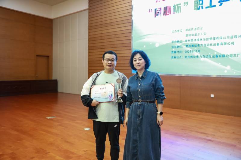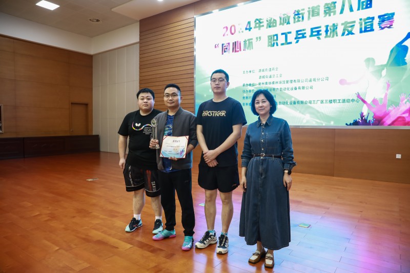 比赛中,裁判员公平裁决营造了良好的比赛氛围,参赛队员各显风采,给大家奉献上一场精彩的竞技体育盛宴。一个个刁钻的角度,一道道精美的弧线,一板板凶狠的扣杀,无不显示着队员们的实力和智慧。大家在比赛中践行着“友谊第一,比赛第二”的体育竞赛精神,相互切磋,增进交流。最后在大家的共同努力下,经过激烈的角逐,博瑞一队、佳鹏铁路及东湖电气分别荣获第一、第二和第三名。潞城街道党工委委员、组织委员、街道总工会主席蒋小芬为获奖团队颁奖。