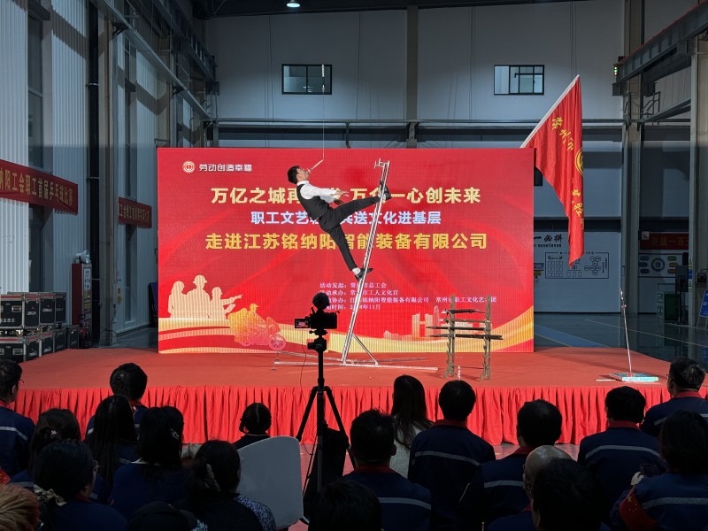 为全面学习贯彻党的二十届三中全会精神,进一步丰富广大职工群众的精神文化生活,团结引领职工凝心聚力推动“万亿之城再出发”,近日,由市总工会发起、市工人文化宫承办的“职工文艺轻骑兵”走进江苏铭纳阳智能装备有限公司。