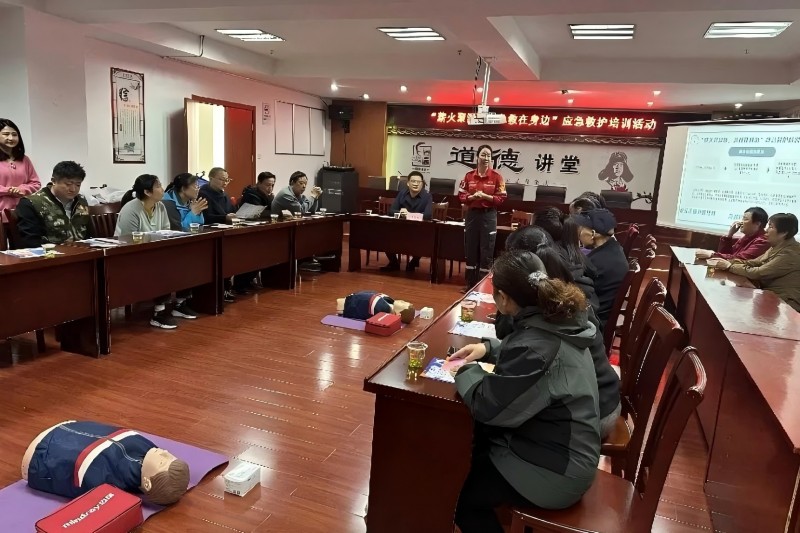 本次培训邀请了金沙救援队专业团队授课,活动采取理论讲解与实际操作相结合的方式进行。金沙救援队队员结合日常生活和突发事件,重点讲解心肺复苏术、海姆立克急救法等应急处理方式,对在事故发生时救助“黄金4分钟”如何采取正确有效的应急措施做了详细教学。