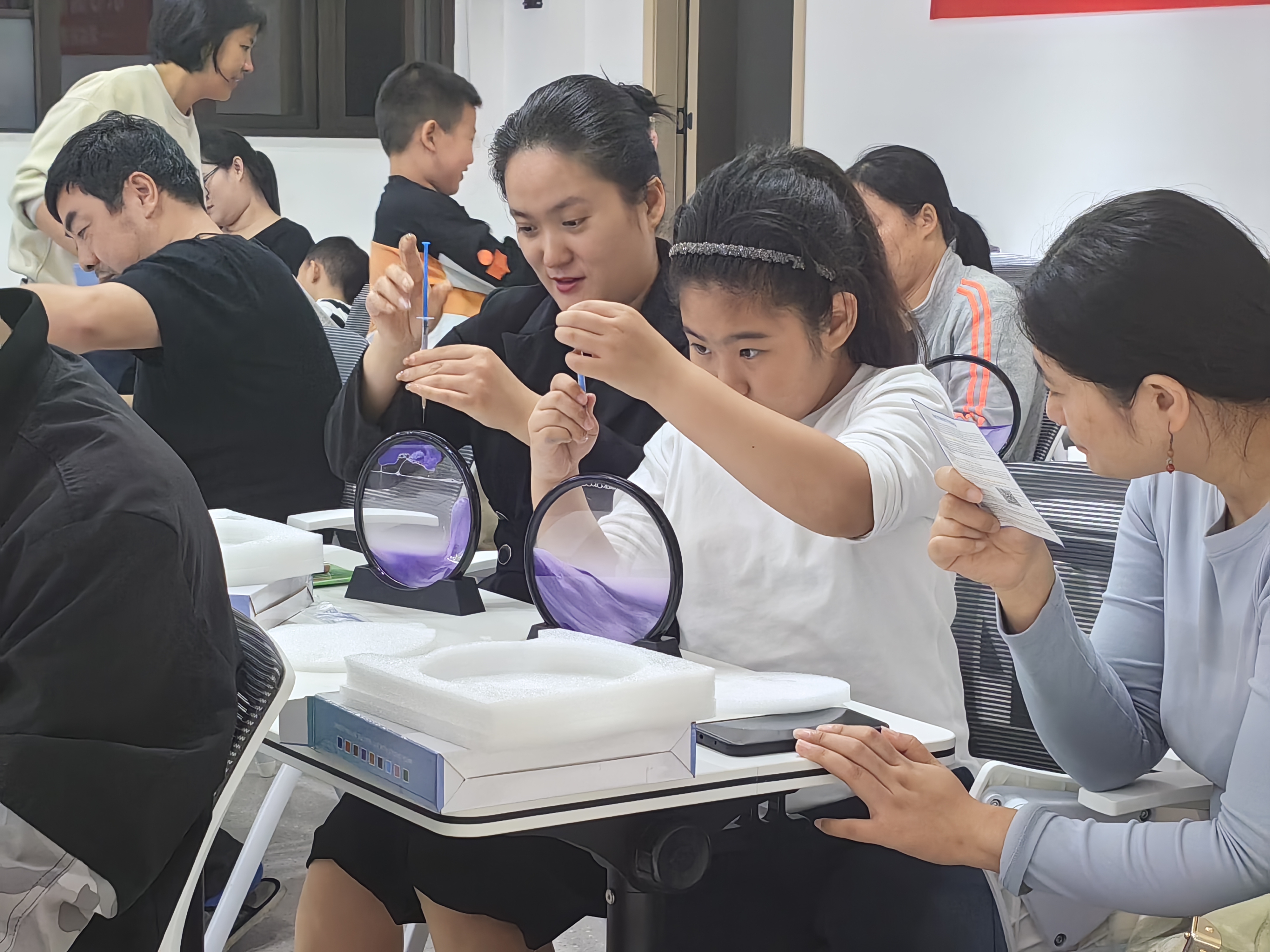 讲座后的沙画制作环节更是将活动推向高潮。在专业老师的指导下,居民们仿佛置身于创意无限的艺术空间,亲手创作沙画,不仅实现了心灵的放松,还激发了创造力与审美能力。沙画作为一种独特的艺术形式,不仅成为减压的有效手段,更让居民们在创作过程中收获了成就感与满足感,有的居民通过沙画重温了童年的美好,有的则表达了对未来的无限憧憬。