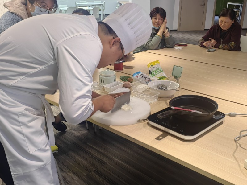 近日,青洋社区工联会举办了一场别开生面的文思豆腐制作教学活动,吸引众多职工热情参与。活动现场,专业厨师首先讲解了文思豆腐的历史文化与烹饪要点,其作为传统淮扬名菜,对刀工要求极高。在厨师的示范下,职工们目睹了一块豆腐如何被切成如发丝般纤细均匀的豆腐丝,纷纷惊叹不已。