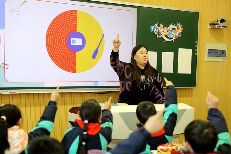 第一节是由东青实验学校徐丽丹老师执教的二年级音乐课《火车开啦》。《火车开啦》是一首匈牙利儿童歌曲,歌曲由4个乐句组成,歌词简练通俗,生动地模仿了火车前进时发出的“咔嚓、咔嚓”的声音,表达了一种愉悦的心情。在备课阶段,徐老师就充分利用国家中小学智慧教育平台资源,汲取了其中很多好的教学方法和教学设计,为课程的开展起到了很大的作用。课堂上徐老师以从中国到匈牙利旅游为情境,通过火车启动、城堡怪兽、钻山洞、穿越游乐场这4道音乐关卡,让同学们身临其境,巧妙攻克重难点,逐步消化知识、提升能力。平板钢琴的模拟演奏,学生不仅学习到了音阶的知识点,同时也真实地感受到触碰钢琴键盘的感受,聆听自己弹出的旋律。互动游戏的PK,让学生们更快更准确地捕捉到下行音阶,强化了学生的视谱能力和视唱能力。借助手机传屏这一精巧设计,即时反馈学生的演唱及表演,师生互评激发学习动力,及时发现问题并调整教学与学习策略,整堂课高效且精彩,充分展现音乐教学的魅力与成效。