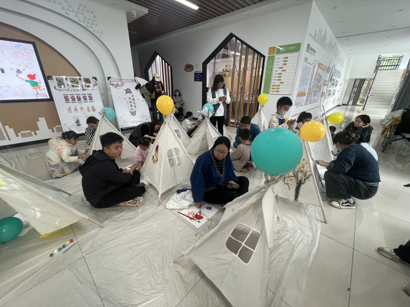 为促进职工家庭亲子关系的和谐与健康发展,2024年12月27日,上城社区工联会联合恩悦社工共同开展“帐篷约绘 趣味童画”活动。
