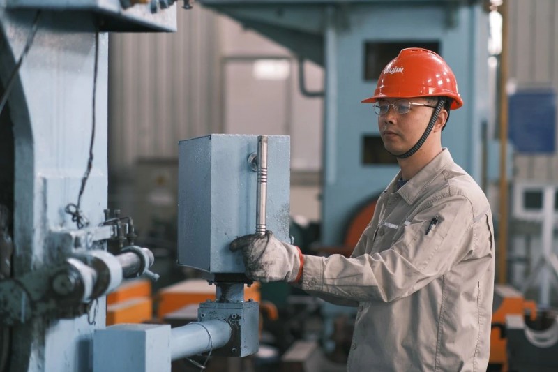 2012年2月,黄保春刚入职时,他接受了公司的三级安全教育和企业文化学习,随后被分配到车间学习弯头、三通、大小头的成型工作。面对陌生的设备和复杂的工艺,他既紧张又兴奋。还记得第一天进入车间,看到弯头、三通、大小头的成型过程,他被深深吸引。在师傅的悉心指导下,他从辨识不锈钢的不同钢种开始学起并养成了严谨的工作习惯,为后续的职业生涯奠定了坚实的基础。