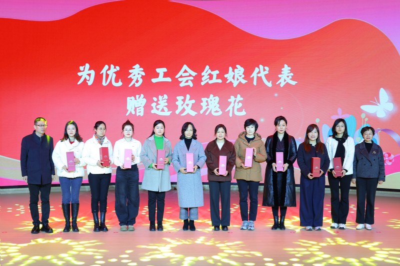 活动现场,市总工会为优秀工会红娘代表赠送玫瑰花,为工会爱心托管工作优秀单位赠送爱心碑,为2024年度新建的女职工康乃馨服务站颁发补贴。