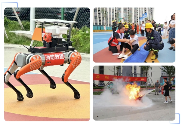 本次演练以人才社区内的5号、6号人才公寓楼、职工夜校•新北漫柏分校突发火情为演练背景,常州市消防救援支队新北大队组织了一批先进适用技术装备下基层、进一线,展开“百米云梯车”高空救人、“灭火机器人”火场救援、“消防无人机”实战演练等行动,检验智能化火情处置系统,以科技力量赋能安全隐患排查,切实提升排查效率与精准度。