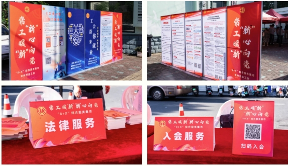 除了提供健康服务、专项保障、入会服务、暖“新”礼包、困难帮扶、能力提升、法律服务、心理咨询八项基础服务外,美彩国际还在现场提供了“X”项特色服务,包括职工创业就业、肩颈理疗、免费理发等多项特色服务,受到新就业形态劳动者的欢迎。