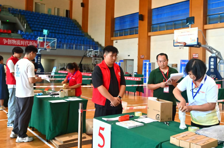 赛场上,选手们个个精神饱满、动作娴熟。在快件分拣环节,他们眼疾手快,用最短时间将违禁品剔出,随即进入包装封装环节。该项目要求选手为玻璃杯、毛绒玩具、衣服、小型电子配件等物品打包。只见选手们先根据物品特性选择纸箱大小,玻璃杯被裹上气泡膜后,四周用缓冲棉填满缝隙;毛绒玩具被装入防水袋,再套上轻便纸箱节省空间;电子配件用防静电袋封装,外贴“轻拿轻放”标识……展现出“快而不乱、稳而有序”的职业素养。快件派送路线设计要求选手筛选去除无法派送的货物后,规划好派送路线,并将地址顺序标签依次放置于对应地址位置;智能终端操作环节考核选手是否熟练运用手持终端扫码、录入信息、操作流畅度,要求流程顺畅、上传备注信息零错误。大赛选手王春花告诉记者:“平时觉得自己操作挺熟练,没想到真到了比拼的赛场,发现自己还有不少不足之处。通过大赛,能从同行身上学到很多实用技巧。”