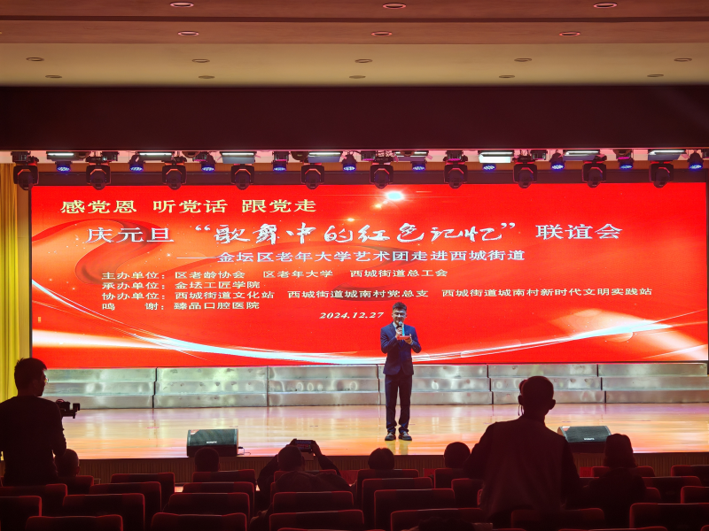 近日,常州市金坛区老龄协会、区老年大学、西城街道总工会联合主办了一场庆祝元旦的“歌舞中的红色记忆”联谊会。此次活动由区新的社会阶层人士联合会和金坛博学教育集团共同承办,并得到了西城街道文化站、西城街道城南村党总支以及西城街道城南村新时代文明实践站的协办支持。