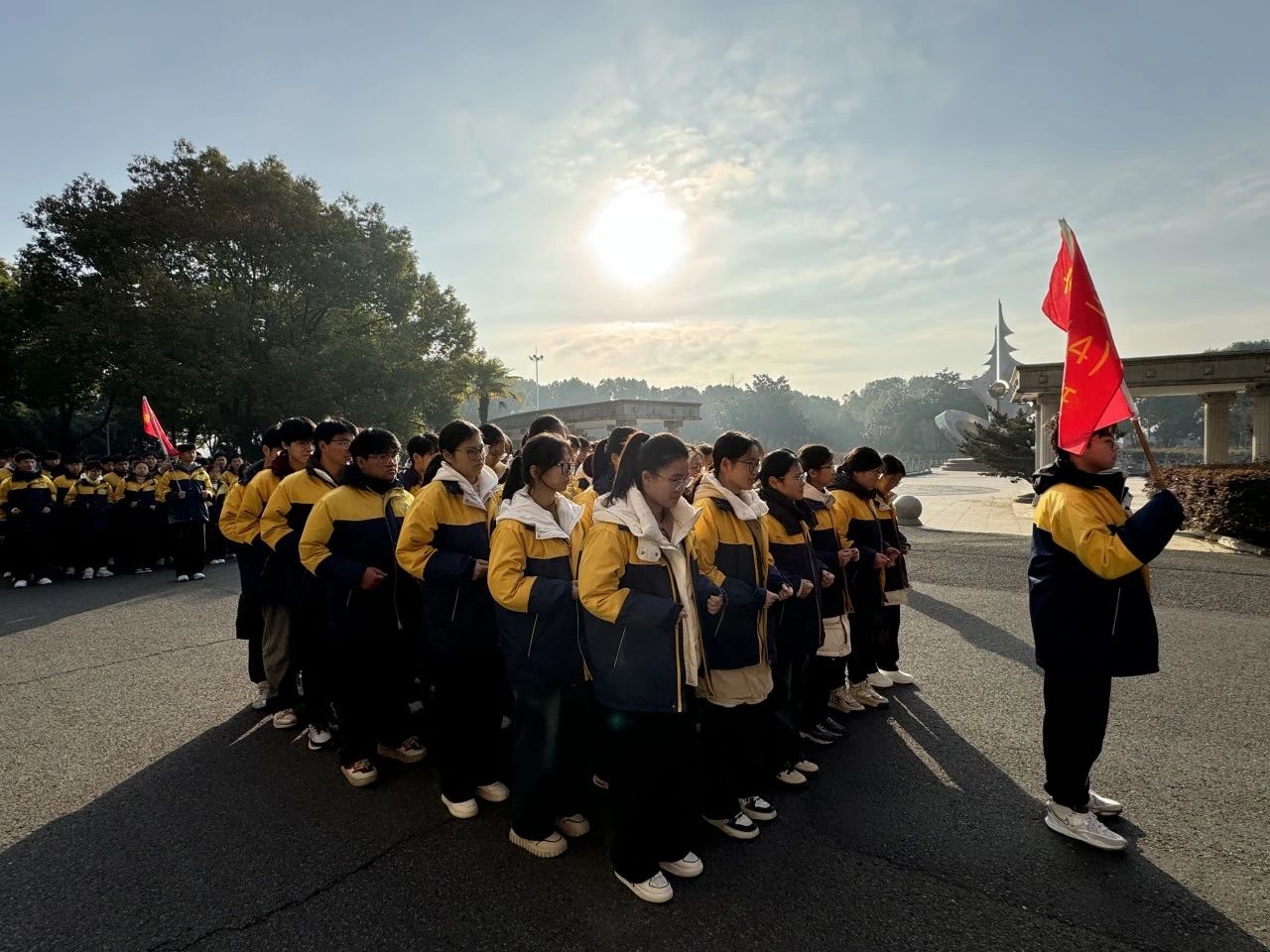 迎着朝阳,同学们身着统一的校服,精神抖擞,士气高昂,展现出青春独有的朝气与活力。各班队伍步伐一致,节奏明快,犹如一条条舞动的彩带,在跑道上划出一道道亮丽的风景线。同学们精神饱满,奋力向前,用速度和激情诠释着青春的无限可能。他们的每一次摆臂、每一步跨越,都凝聚着对胜利的渴望和对集体的热爱。