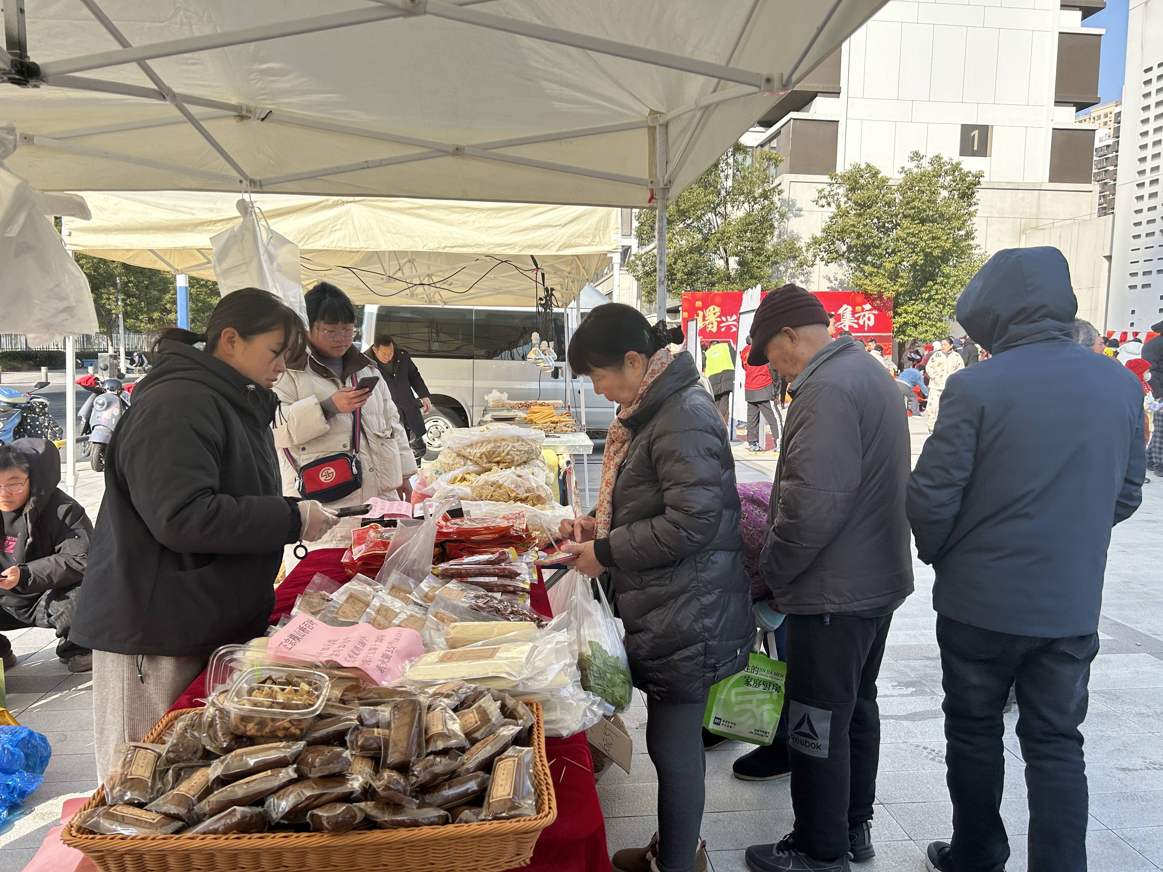 便民服务区,社区邀请公益伙伴和爱心商户前来助阵,各类摊位琳琅满目,除了政策咨询、防诈骗知识宣传等,还有居民自发组织的手工艺品义卖,以及小朋友们喜爱的套圈、扔沙包游戏等多个便民服务摊位。居民们积极参与,带着亲朋邻里至摊位处挨个“打卡”,公益市集成为居民互动交流的社区“朋友圈”,也让“小市集”更好地服务了“大民生”,增进了邻里温情。