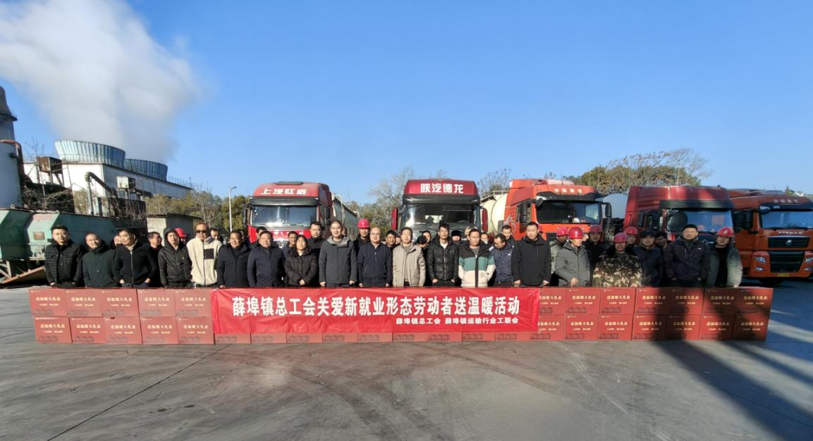 近日,在凛冽的冬日寒风中,常州市金坛区薛埠镇总工会为新就业形态劳动者们带来了融融暖意。金坛区总工会组织部部长许华玉、薛埠镇总工会副主席周俊以及薛埠镇运输行业工联会主席蒋小明带队慰问货车司机。这场充满温情的关爱新就业形态劳动者送温暖活动在盘固水泥集团有限公司举行,众多货车司机感受到了来自工会组织的深切关怀与爱护。活动当天,现场气氛热烈非凡。许华玉一行早早来到现场,他们忙碌的身影,彰显着对此次活动的重视以及对货车司机群体的关切。
